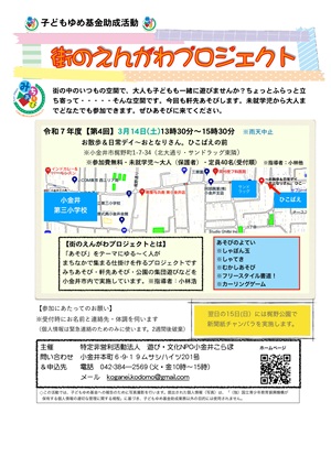 小金井こらぼは、広く一般市民を対象に、子どもたちの心豊かな成長を育むために、地域にネットワークをひろげ、芸術文化体験活動、自然体験活動、遊びや創造的な活動を創り、地域の文化的環境の向上に寄与することを目的としています。